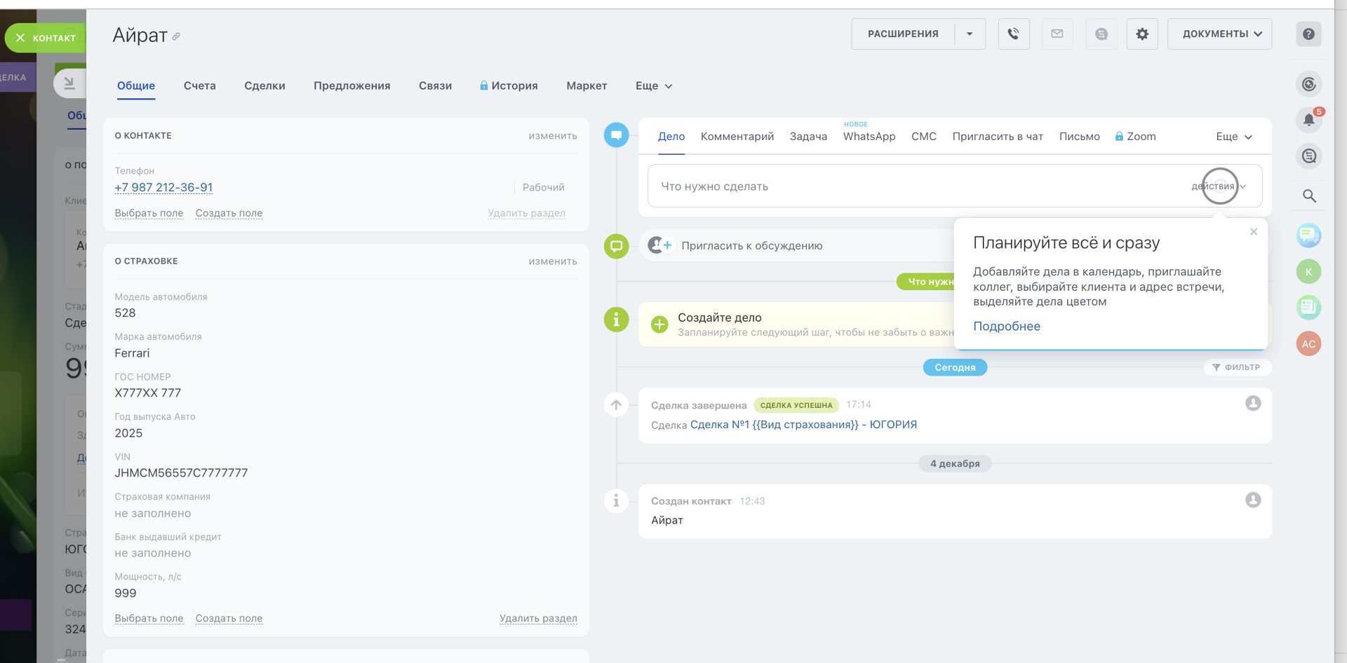 Система сама оповестит клиента о очередном продлении, а так же поставит задачу менеджеру связаться с клиентом. И все это в автоматическом режиме!