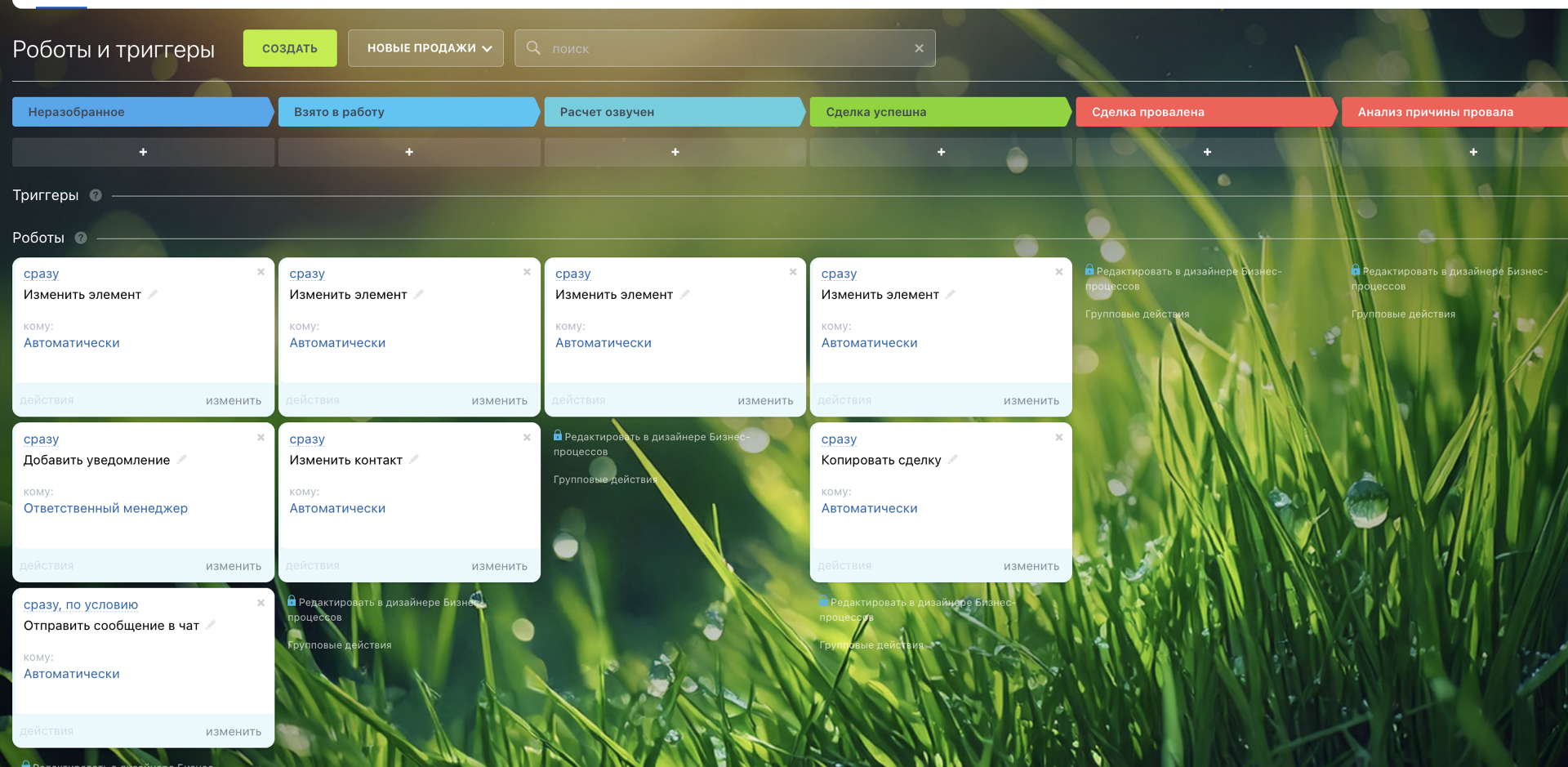 Постановить задачу, запланировать звонок или встречу, сменить ответственного или стадию сделки, отправить письмо или SMS, напомнить ответственному — это лишь часть того, что вы можете настроить с помощью роботов и триггеров в CRM и Задачах.