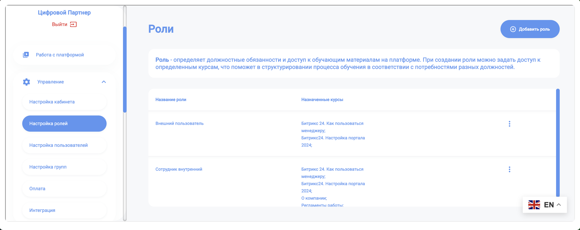 Вы можете создать множество обучающих курсов, и разделить их по ролям! Для повора свои курсы, для зав складом свои!