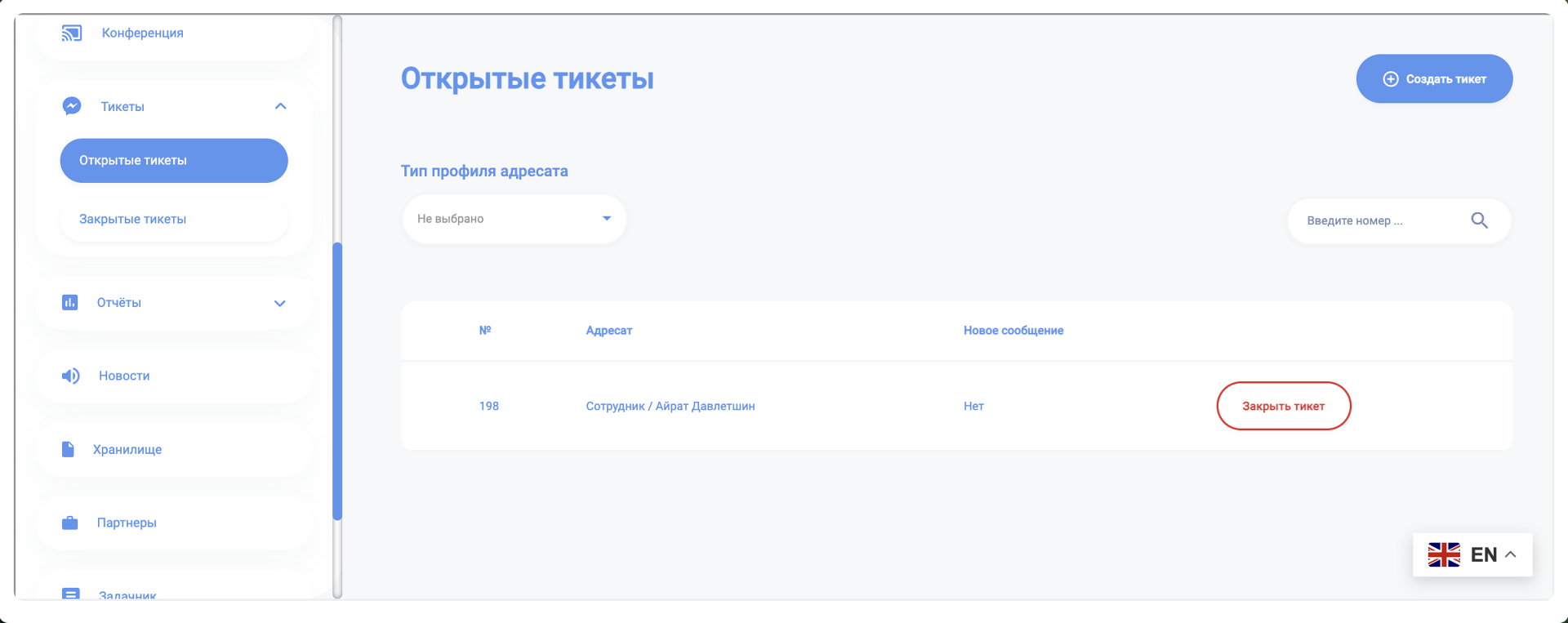 Встроенная система тикетов позволит фиксировать все обращения к организаторам или тех. поддержке.